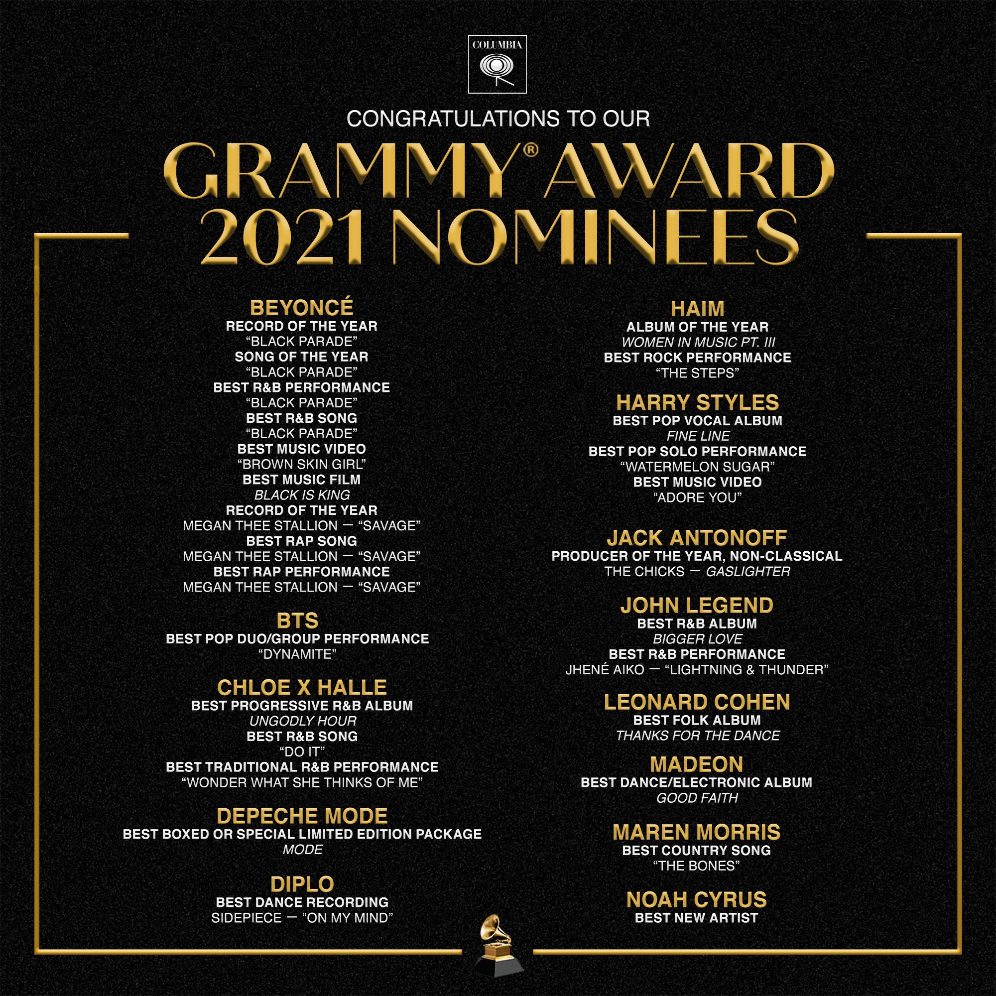 Columbia Records On Twitter Congratulations To Our 2021 Grammy Nominees