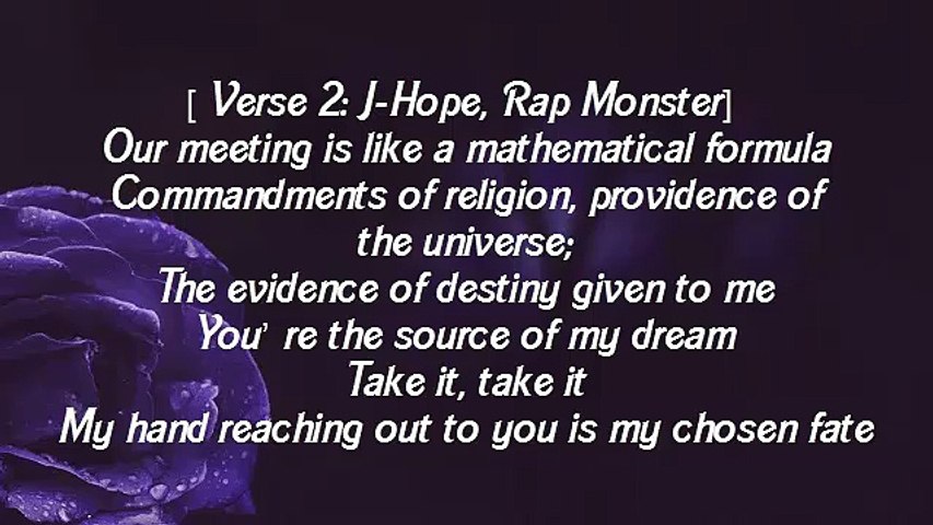 From the day of the universes creation and onThrough the infinite centuries and onIn the previous life. Doolset lyrics BTS Lyrics in English. At first sight I could recognize you As if we were calling for each other The DNA in my blood vessels tell.