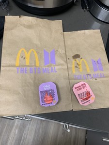 For a cool 50 on eBayca you can get a lovely grease-stained McDonalds bag bearing the lavender BTS logo next to the signature golden arches. Drinks Cup x 1. Mildly disappointed theres no pretty purple packaging in the US but at least I got the paper bag and I liked the Cajun sauce more.